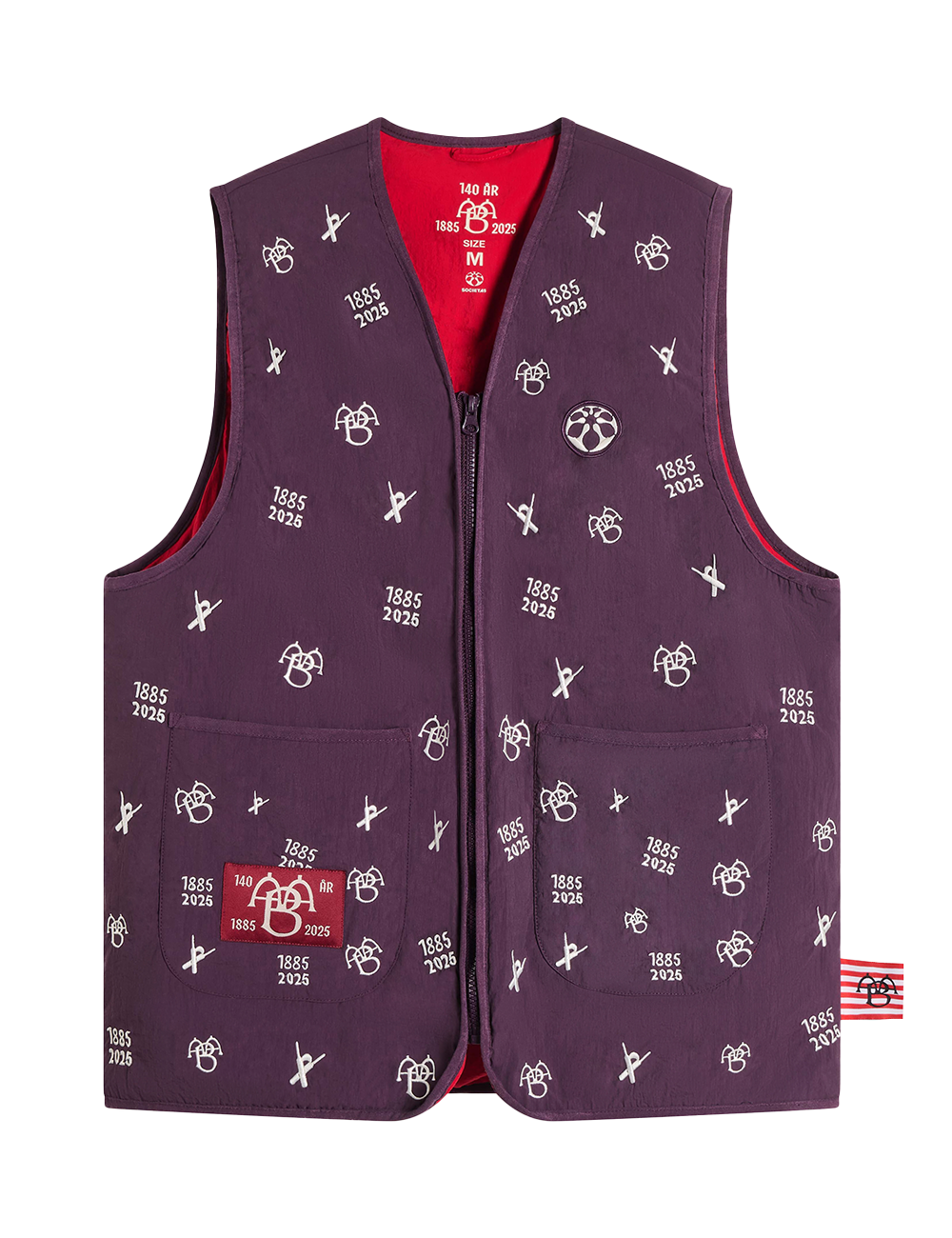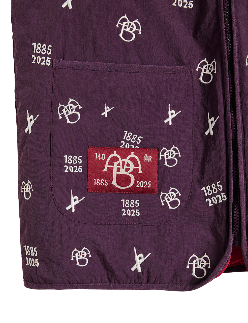 Denne polstrede vest har et påsyet mærke og heldækkende broderi for at markere klubbens 140-år føselsdag. Funktionel og raffineret med lynlåslukning og to påsyede lommer foran.