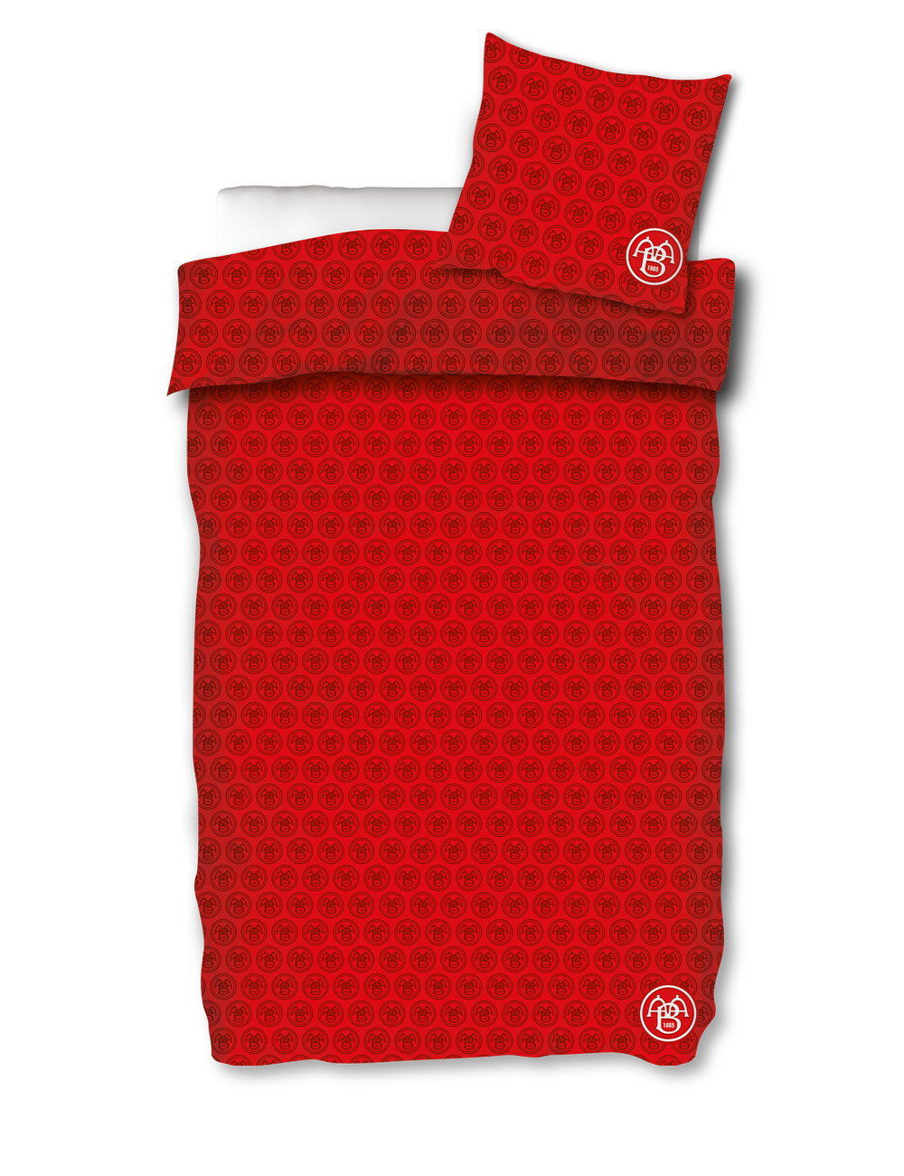 Dette sengesæt er lavet i den klassiske røde AaB farve med en masse små AaB logoer. Sengesættet er ideelt som gave, og vil glæde enhver AaB fan.