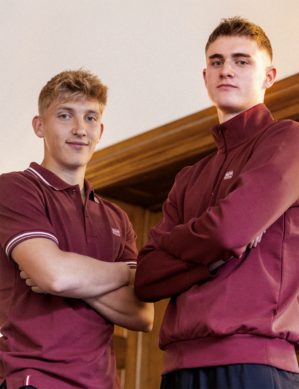 Kollektionen består af en polo, langærmet polo og en ¼-zip cardigan, som fås i både navy-blå og bordeaux-rød.