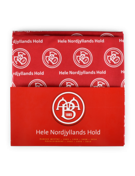Originalt AaB-logo trykt med teksten "Nyeste medlem af Hele Nordjyllands Hold"