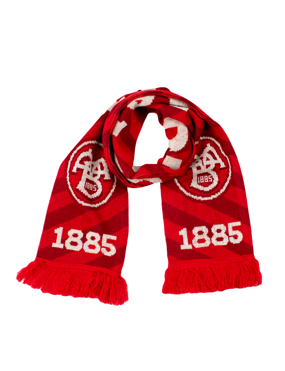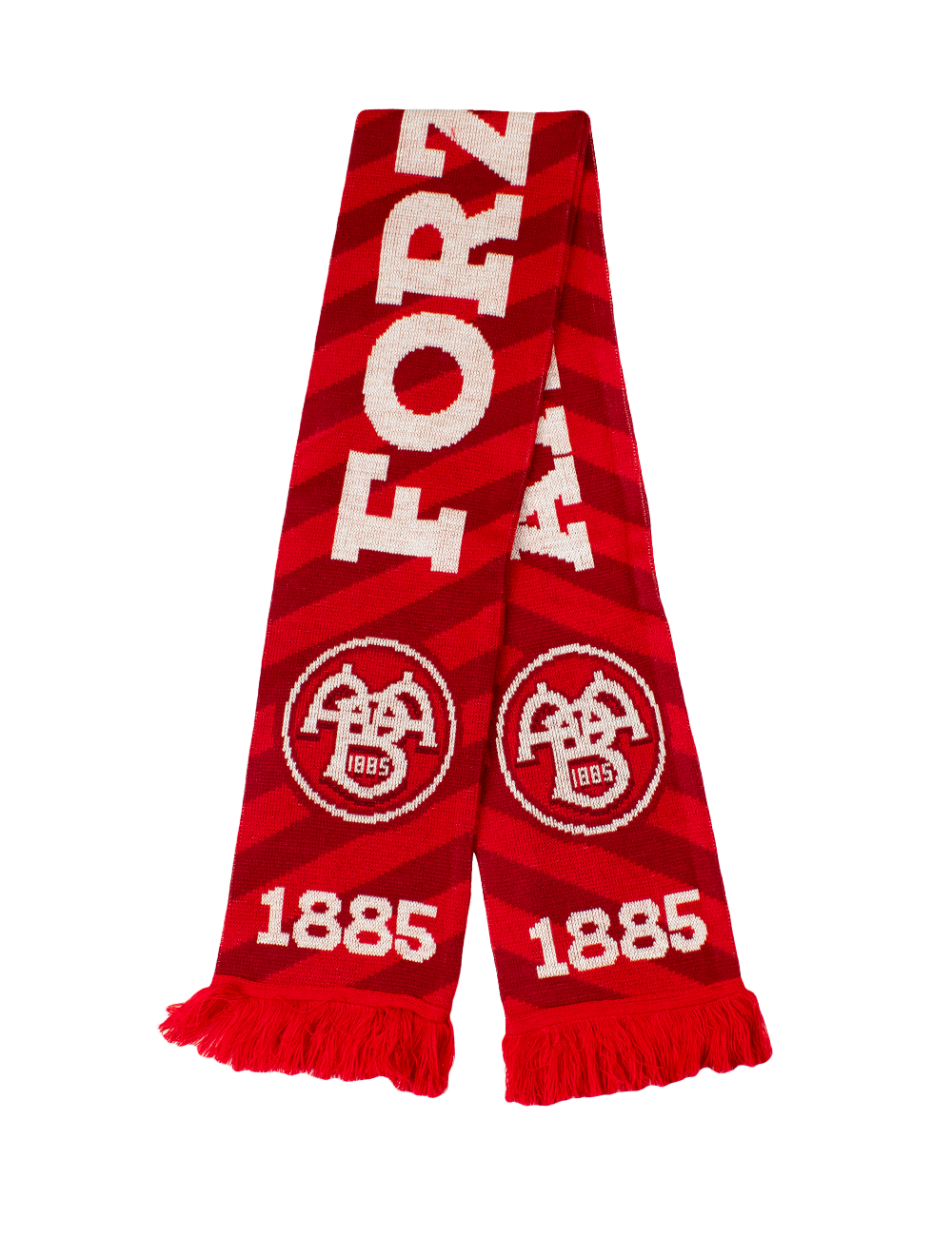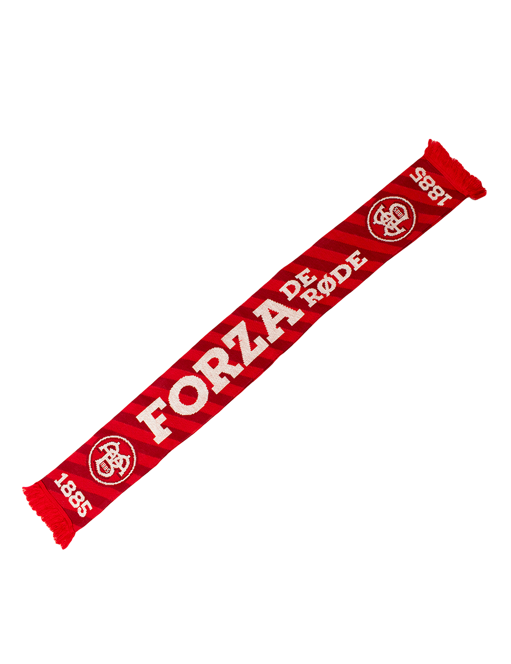 Et klassisk AaB halstørklæde med "Aalborg BK" på den ene side og "Forza De Røde" på den anden side. En nødvendighed når turen går til stadion for at støtte hele Nordjyllands hold.
