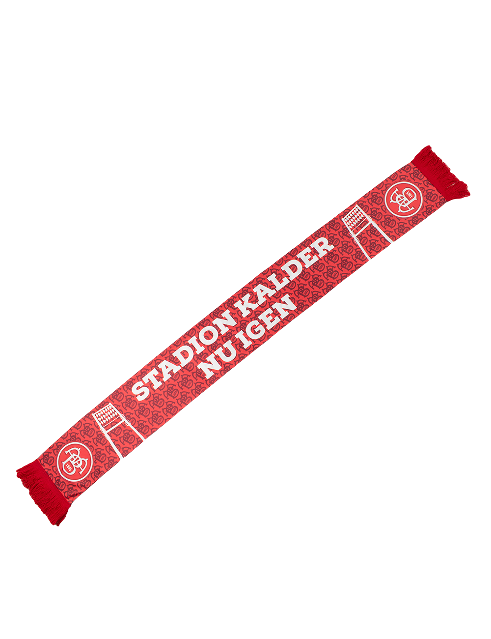 Et klassisk AaB halstørklæde med "Stadion Kalder Nu Igen". En nødvendighed når turen går til stadion for at støtte hele Nordjyllands hold.