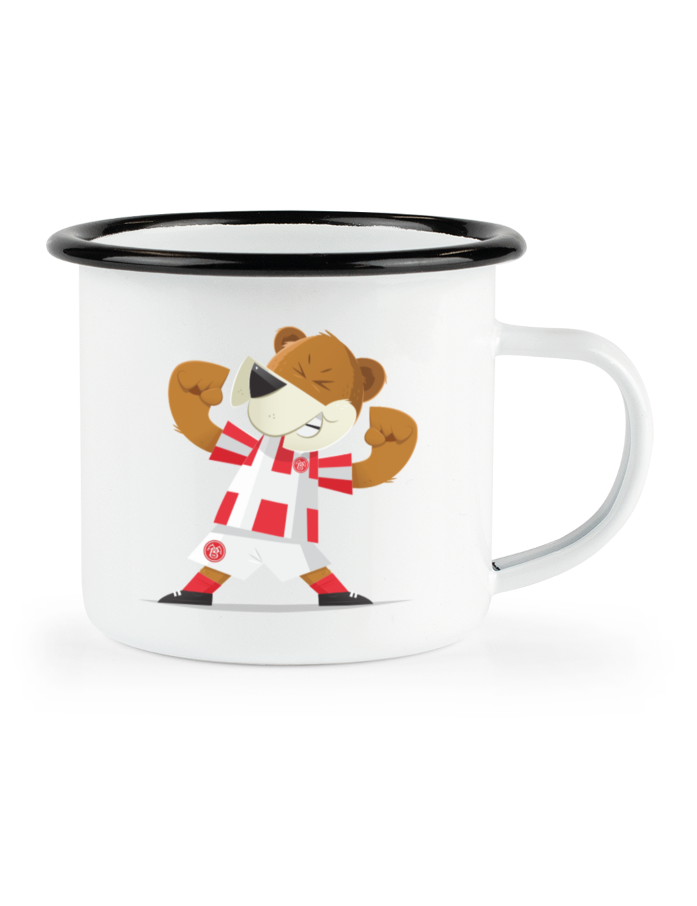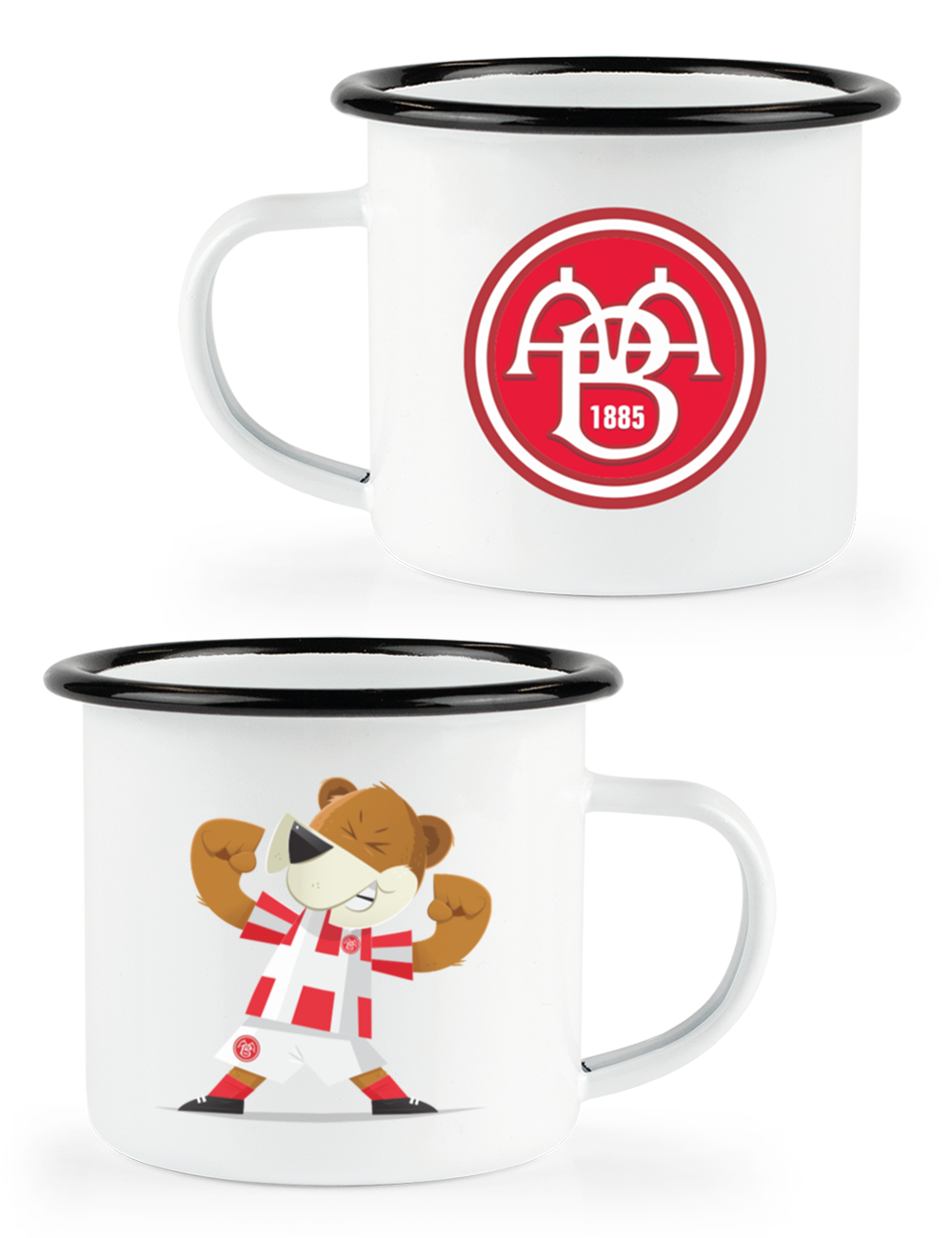 Dette hvide emaljekrus er lavet med sort kant og hank. På den ene side ses en jublende Theodor, og modsatte side det klassiske AaB logo. Theodor elsker når AaB scorer mål, og er ikke bange for at vise sin begejstring.