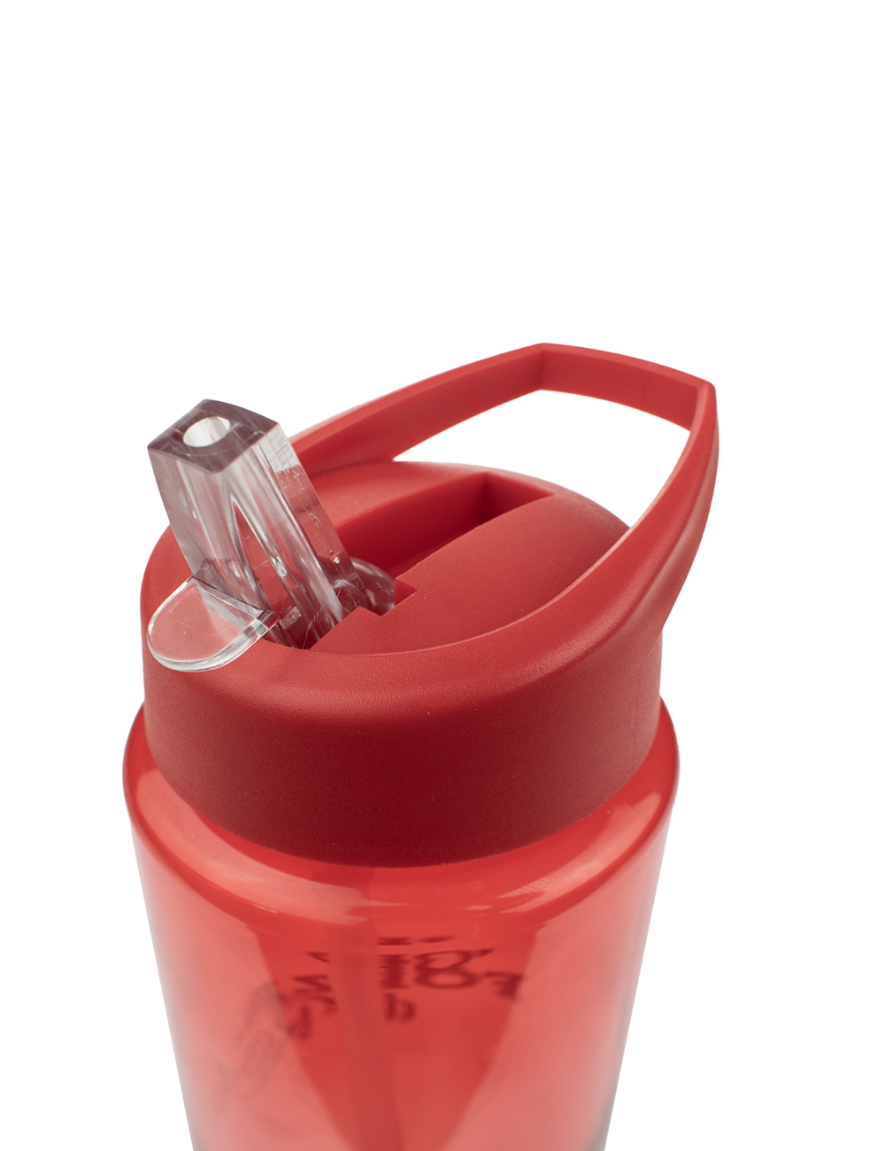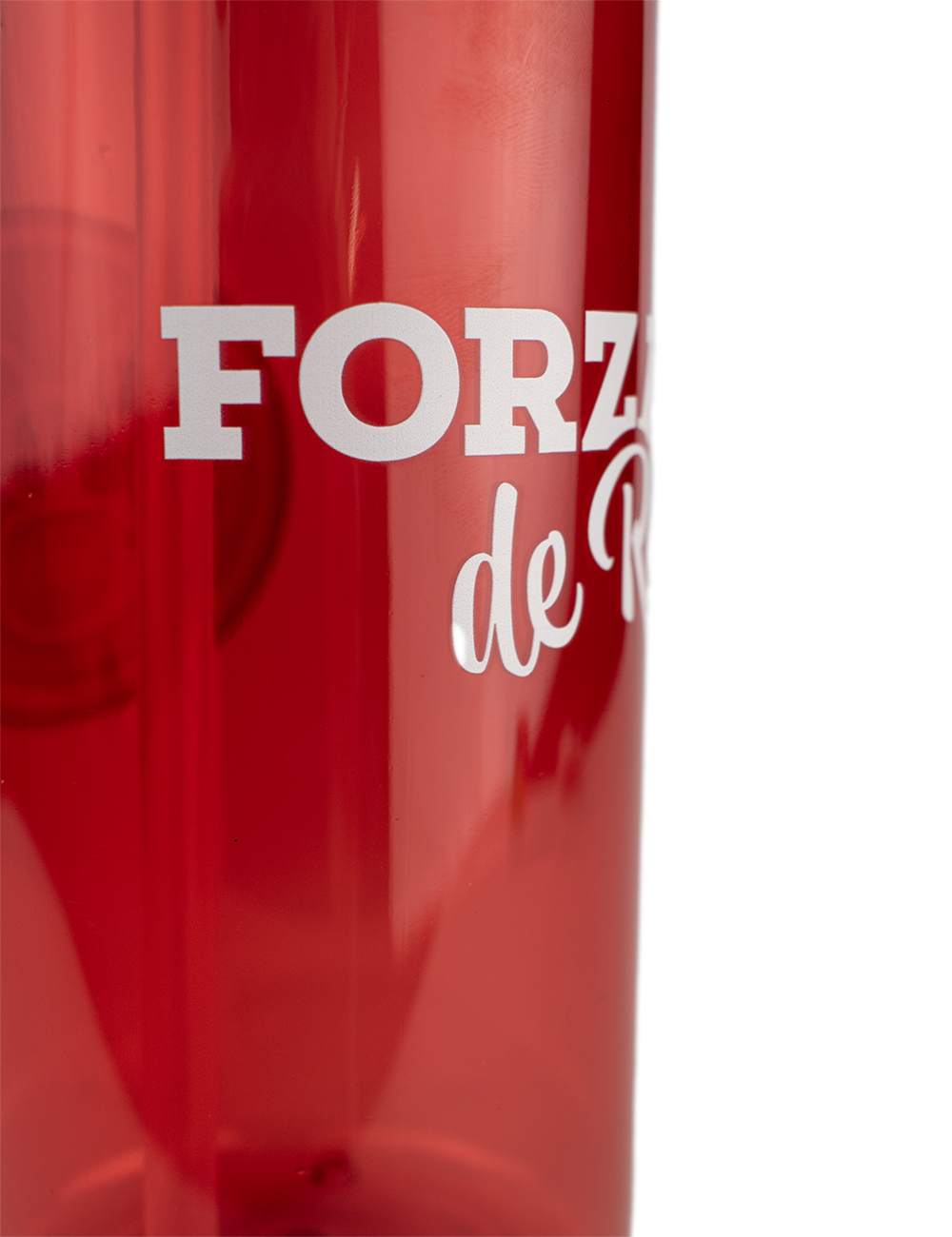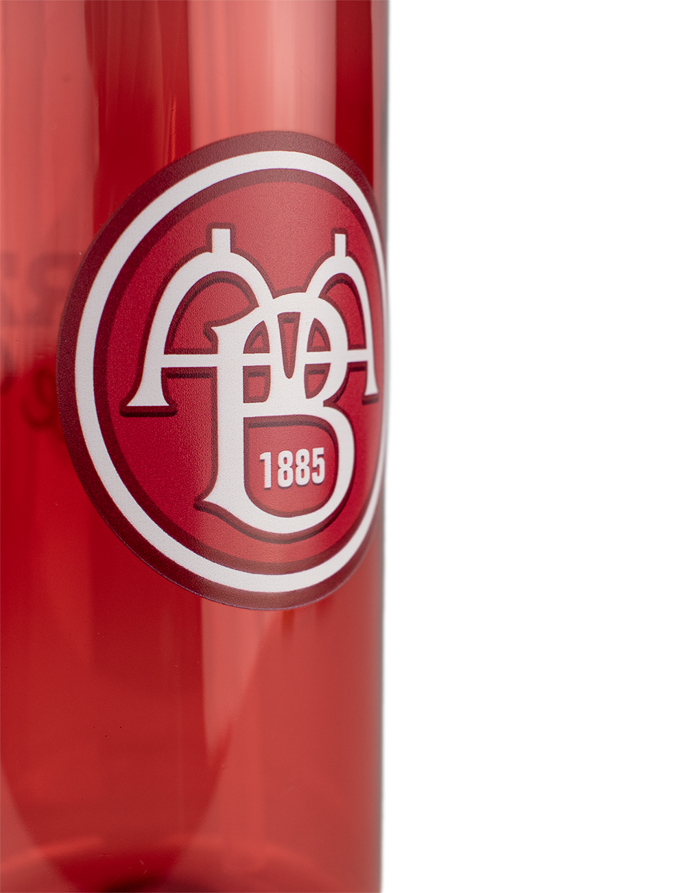 Denne AaB drikkedunk er lavet med skruelåg, og et smart sugerør, som kan tages af. Drikkedunkens låg er lavet med en god hank, så man let kan holde fast i den, eller sætte den fast på en skoletaske eller lignende.
