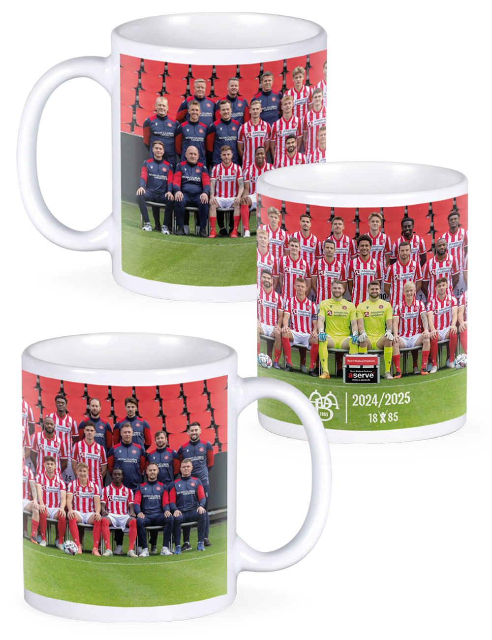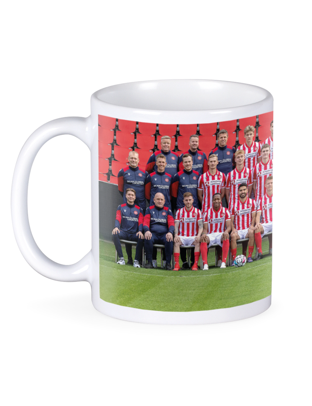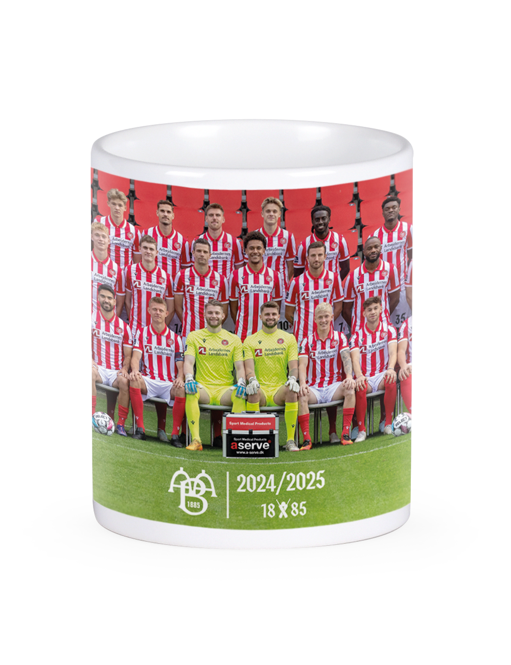 Årets holdfoto for sæson 24/25 er taget på Aalborg Portland Park, hvor det smukke græs og tribunen sammen danner en perfekt ramme om holdet og staben. Holdet bærer den populære klubdragt på billedet, som pynter på dette krus.