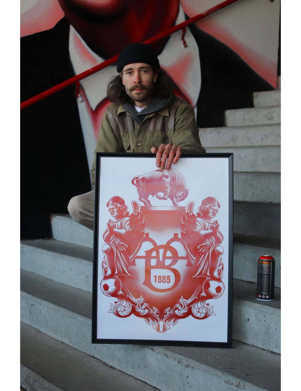 Den lokale graffitikunstner, BurnOn, som har medvirket til udsmykningen af indgangene på Aalborg Portland Park, har produceret to håndtegnede illustrationer i plakatform, med AaB som tema.