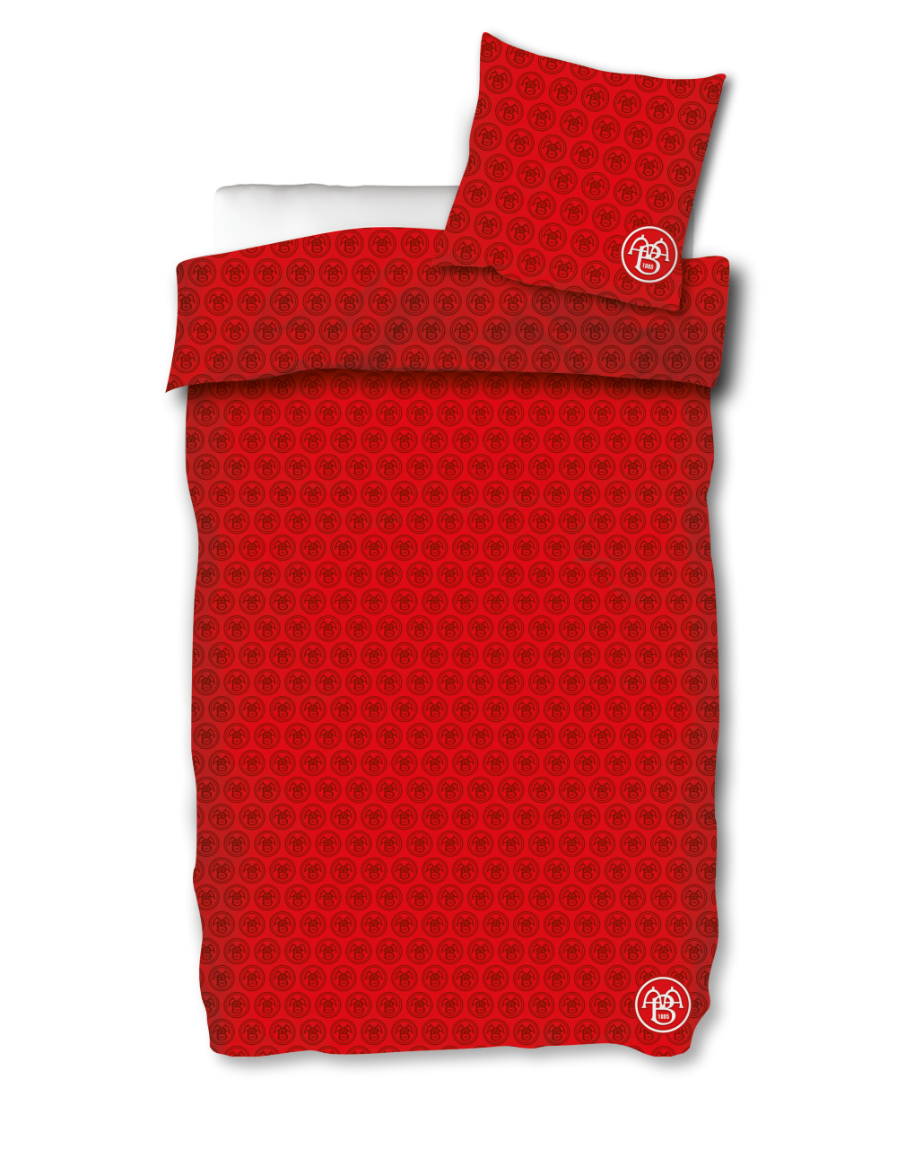 Dette sengesæt er lavet i den klassiske røde AaB farve med en masse små AaB logoer. Sengesættet er ideelt som gave, og vil glæde enhver AaB fan.