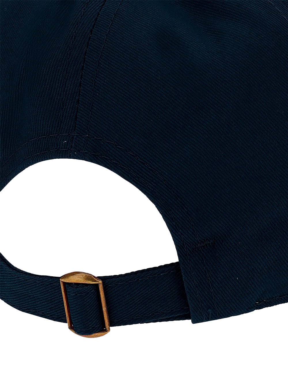 En simpel kasket med buet visir, og metalspænde lukning som kan justeres efter behov og pasform.