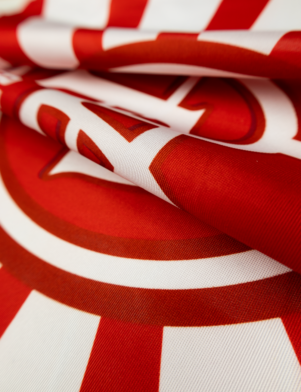 Flaget er designet med røde og hvide striber, og vores alles AaB logo i midten.