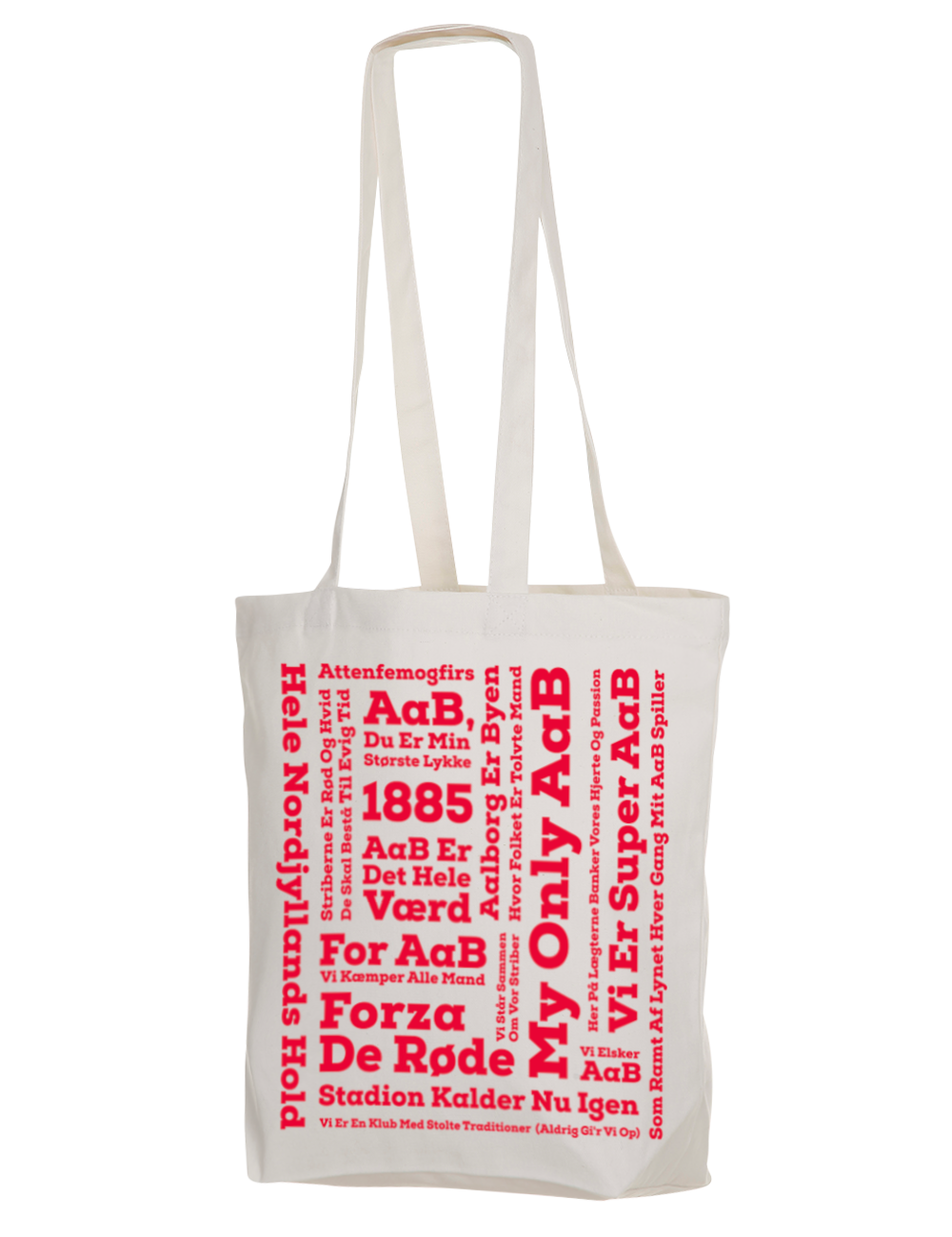 Denne mulepose er produceret i et let men kraftigt materiale, så den kan holde til de mange ture i supermarkedet. Brug denne mulepose til at handle, opbevaring af tæpper til hjemmekampe, og meget mere. Muleposen er designet med velkendte AaB sangtekster som har fulgt 'Hele Nordjyllands Hold' siden starten i 1885. Den lange hank gør den nem at bære på skulderen eller over armen. En klassiker som med garanti vil blive en favorit.
