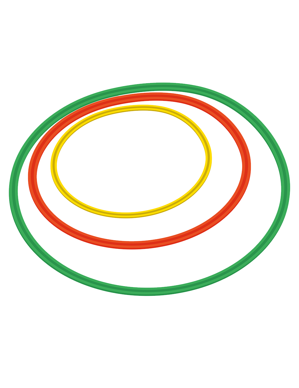 Speed ringene viser sig i 3 farver og størrelser: Gul: 50 cm. Rød 60 cm.Grøn 70 cm.