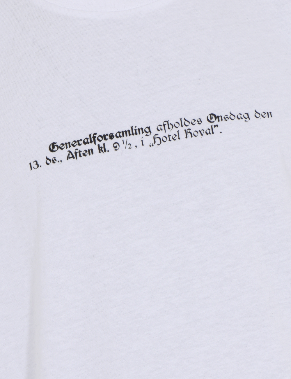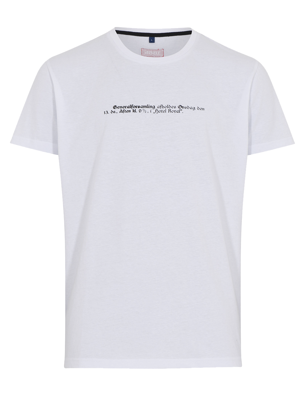 Denne t-shirt sætter fokus på den stiftende generalforsamling på Hotel Royal d. 13. maj kl. 21.30 i 1885, hvor designet er et udsnit af invitationen, som blev bragt i den lokale avis.